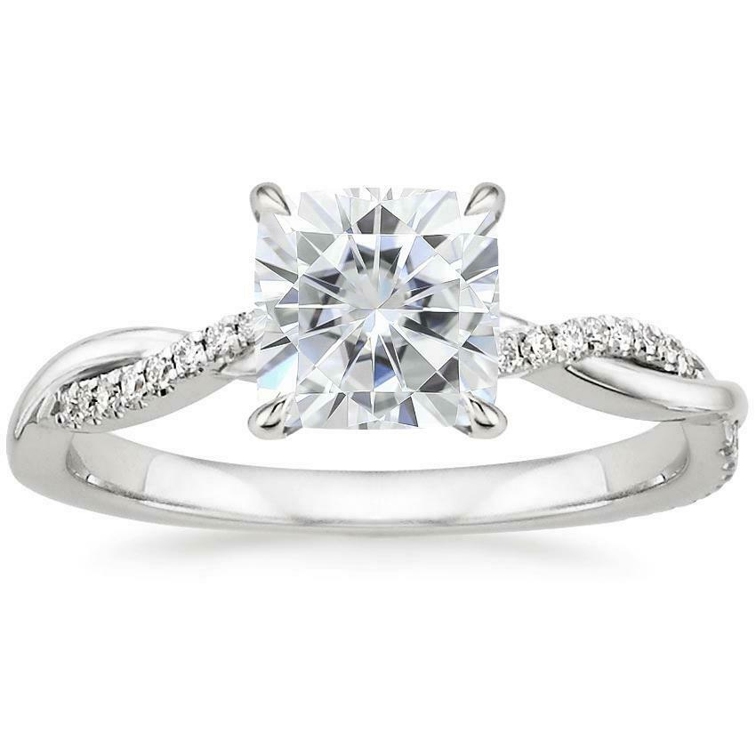 4ct Cushion Cut Diamond Engagement Ring 14k White Gold Over Twist Band Solitaire