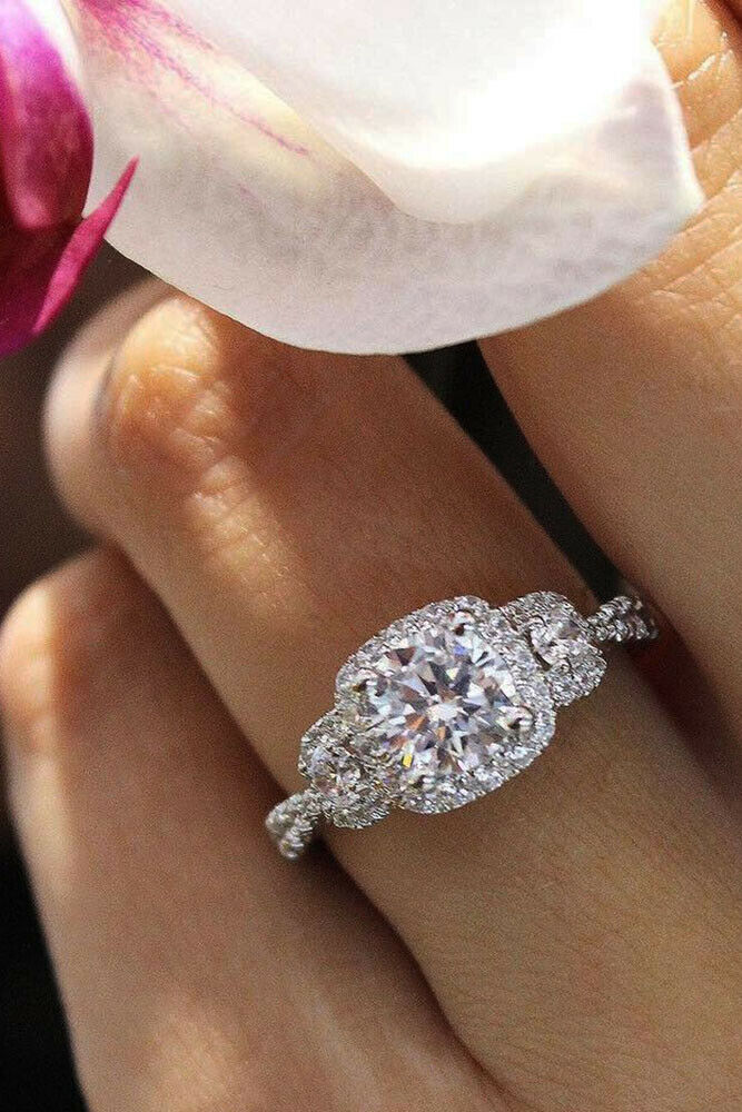 4Ct Cushion Cut Diamond Halo Iced Women Engagement Ring 18K White Gold Finish