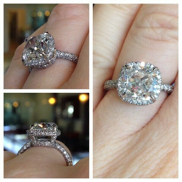 4Ct Cushion Cut Diamond Round Halo Accents Engagement Ring 14K White Gold Finish
