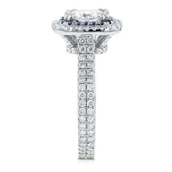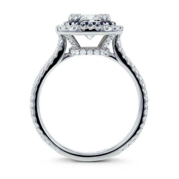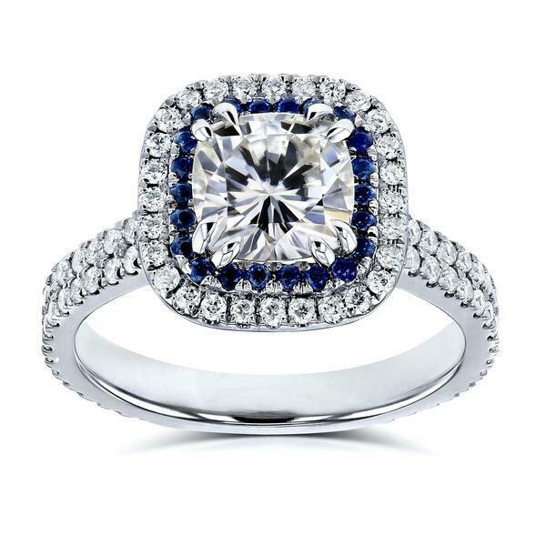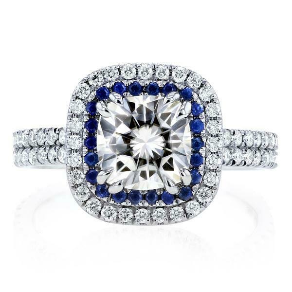 4Ct Cushion Cut Diamond Sapphire Dual Halo Engagement Ring 14K White Gold Finish