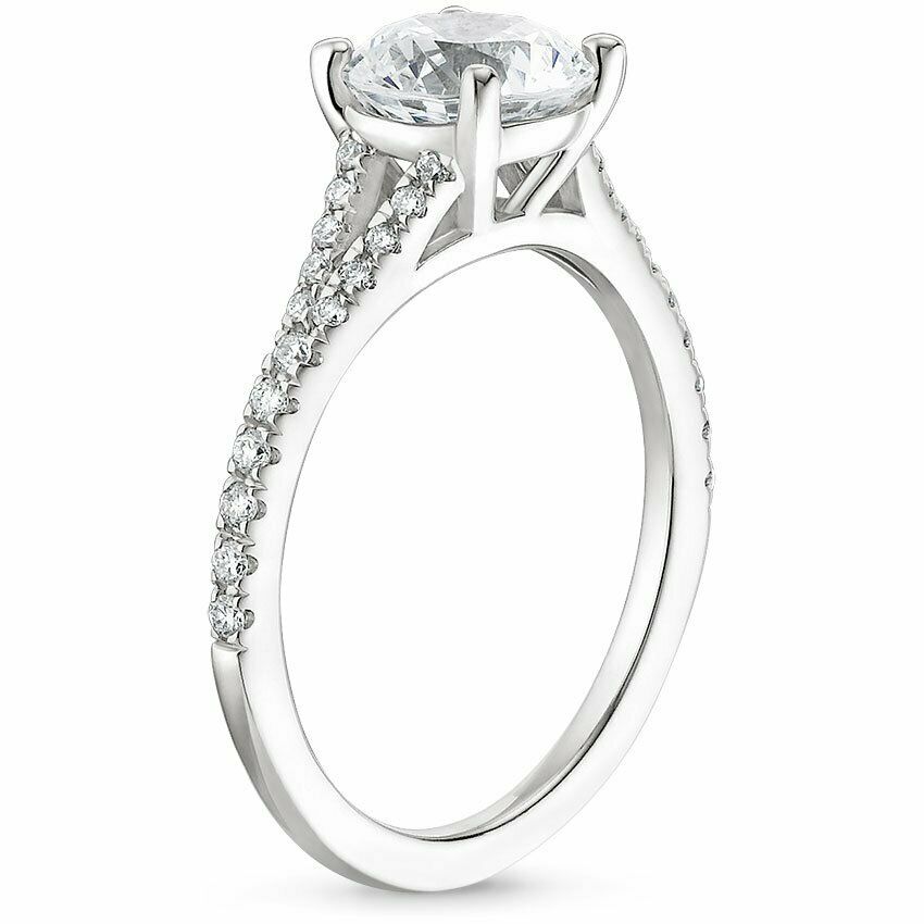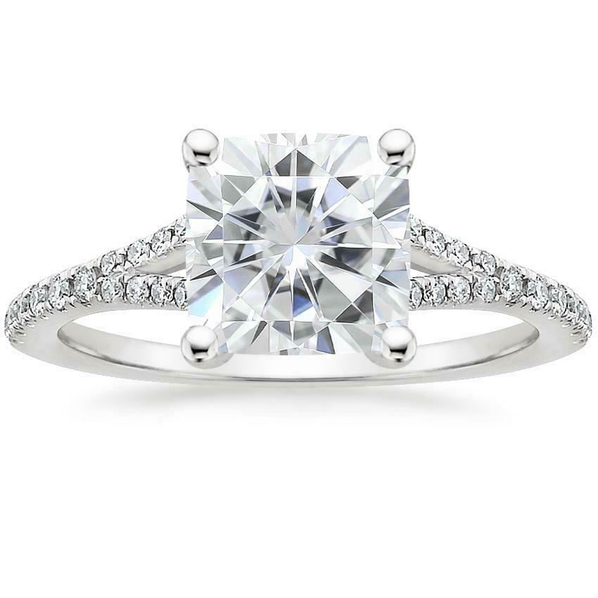 4Ct Cushion Cut Diamond Split Band Solitaire Engagement Ring 18K White Gold Over