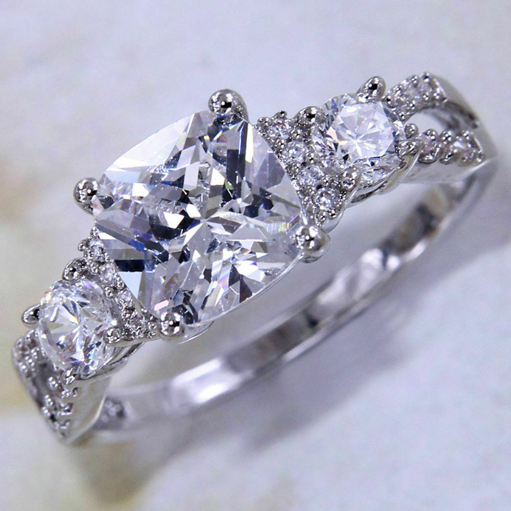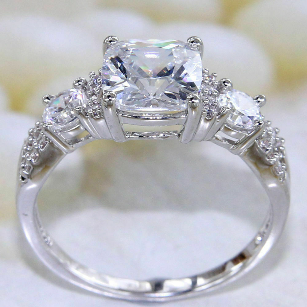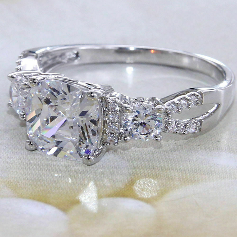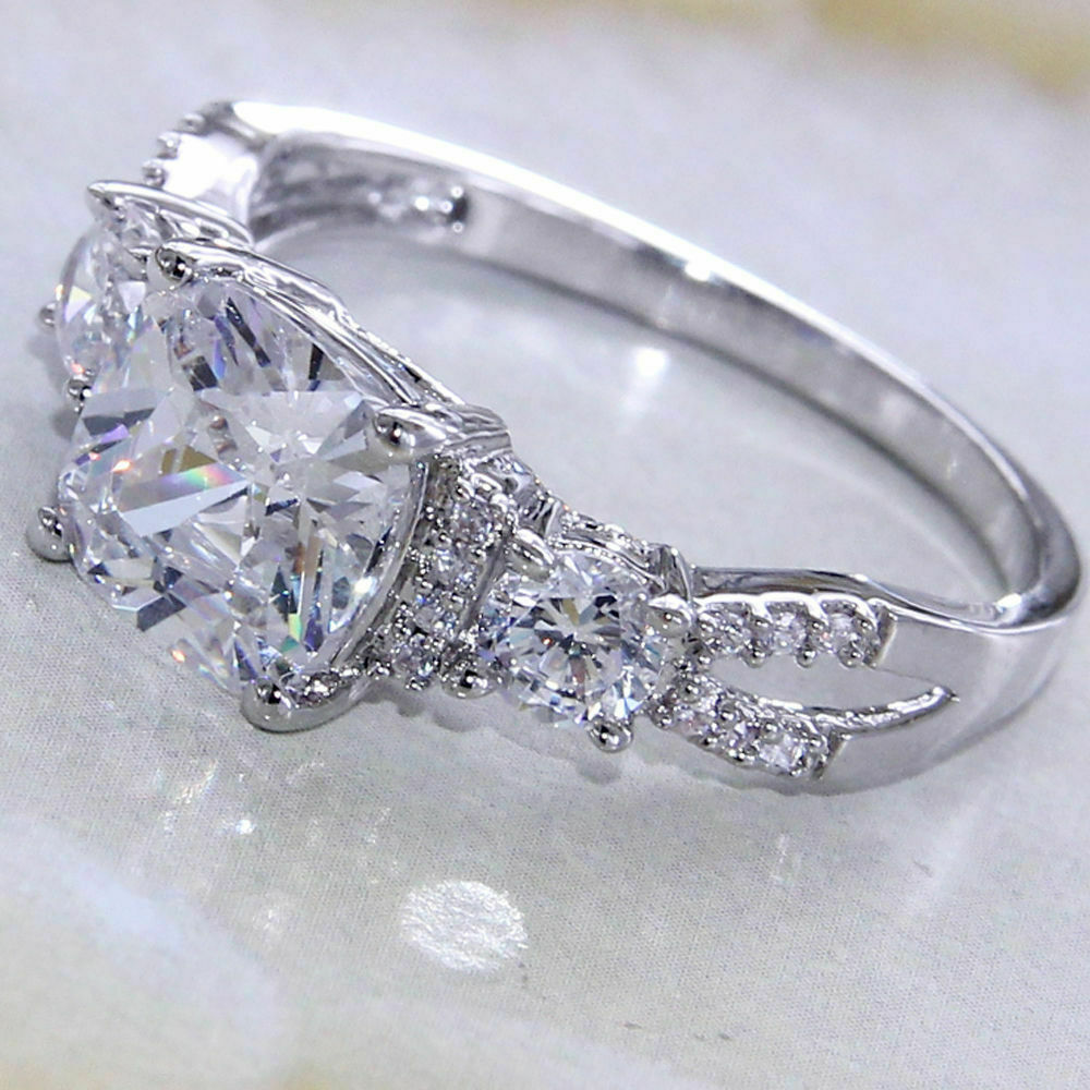 4Ct Cushion Cut Diamond Split Band Stylish Engagement Ring 14K White Gold Finish