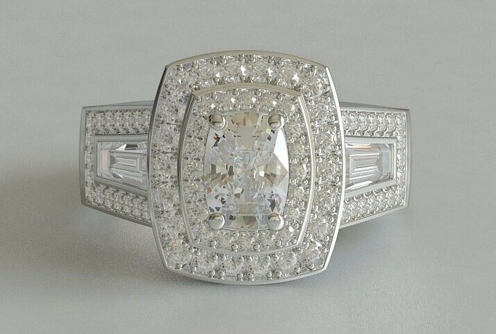 4ct Cushion Cut VVS1D Diamond Engagement Ring Double Halo 14k White Gold Finish