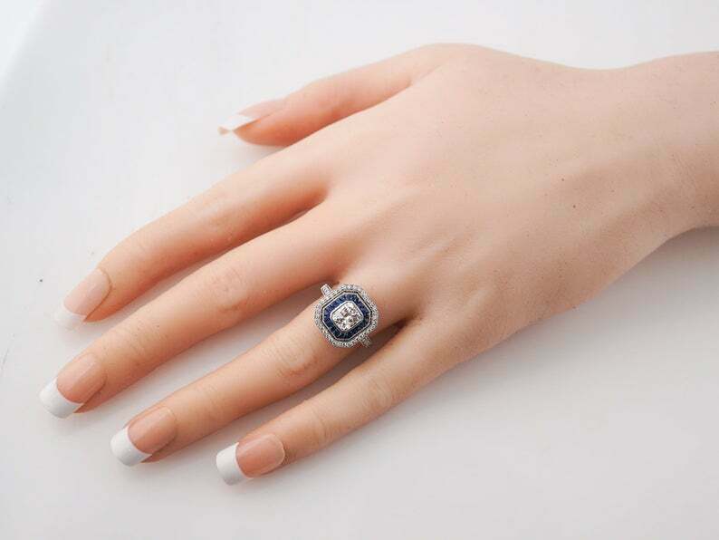 4ct Cushion Cut Diamond Engagement Ring Blue Sapphire Dual Halo 14k White Gold Over