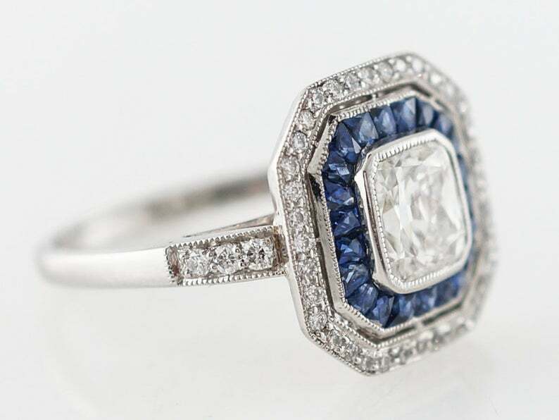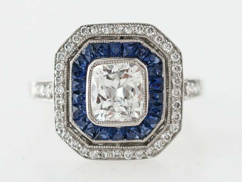 4ct Cushion Diamond Engagement Ring Blue Sapphire Dual Halo 14k White Gold Over