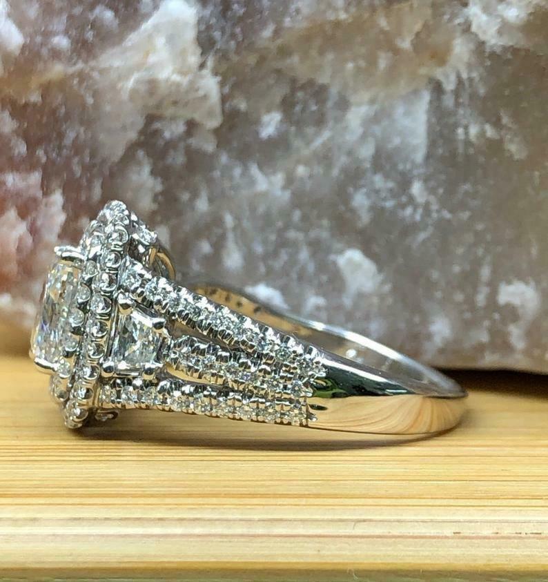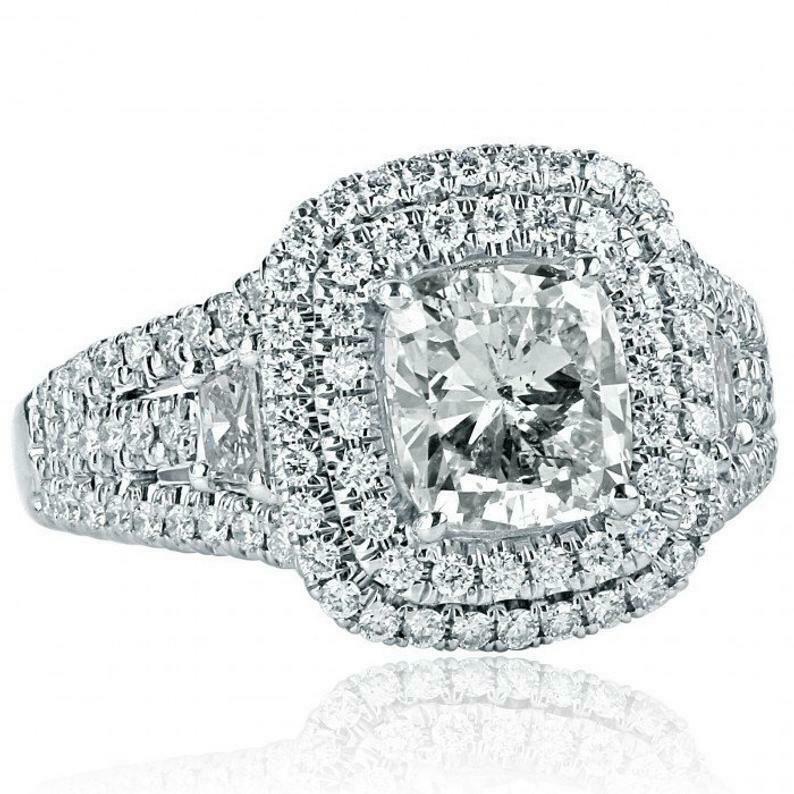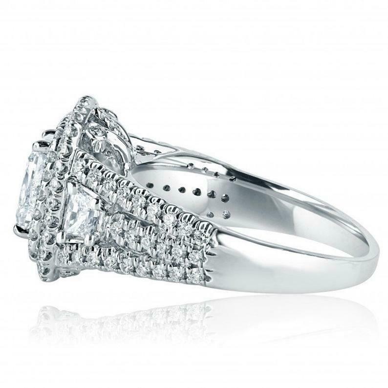 4ct Cushion Diamond Engagement Ring Iced Dual Halo Cocktail 14k White Gold Over