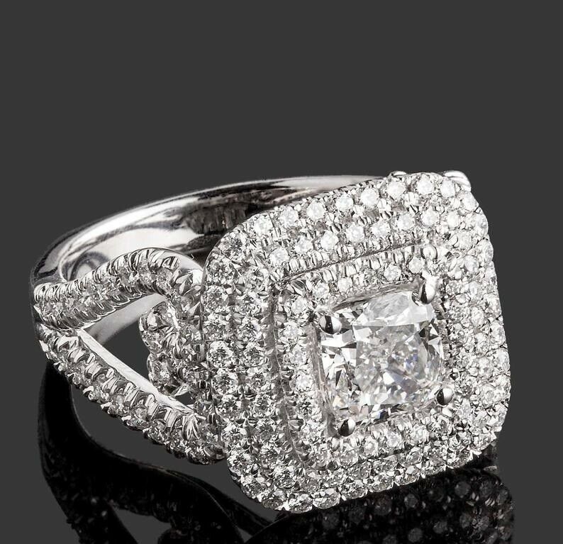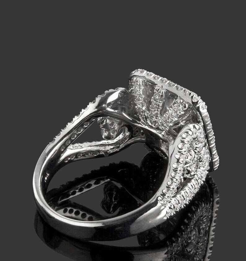 4ct Cushion Cut Diamond Engagement Ring Triple Halo Cocktail Iced 14k White Gold Over