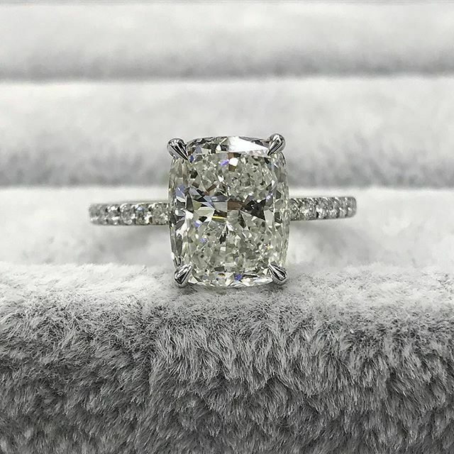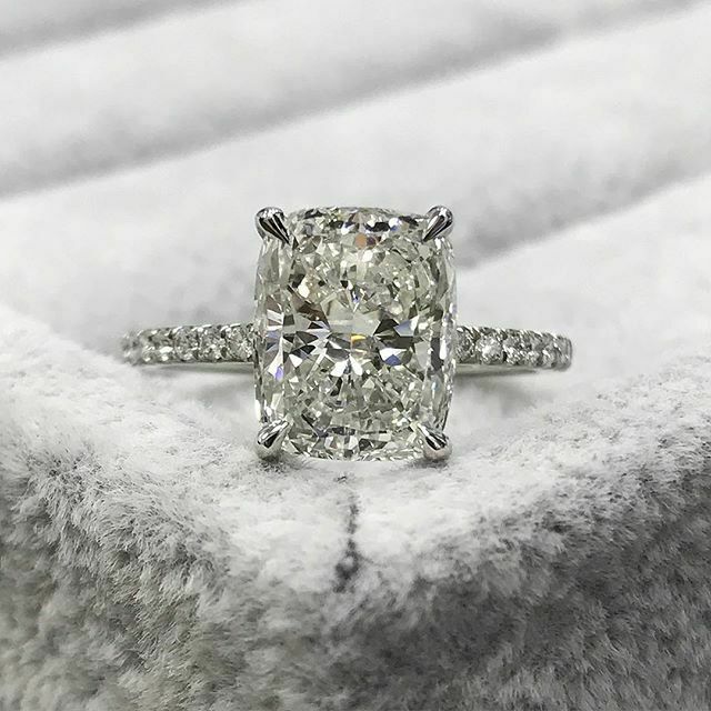 4Ct Elongated Cushion Cut Diamond Accents Engagement Ring 14K White Gold Finish
