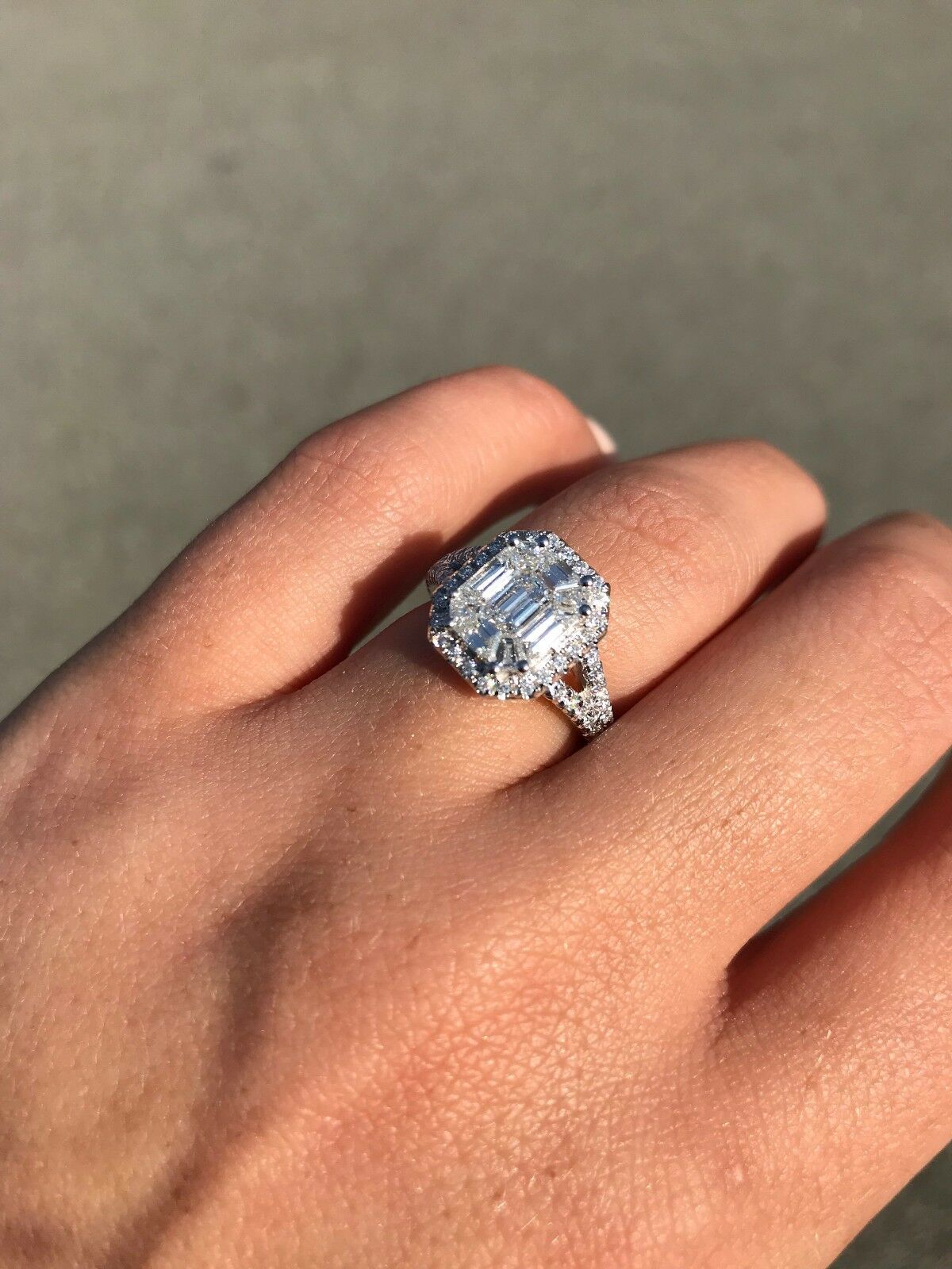 4ct Emerald Baguette Cut Diamond Halo Split Band Gatsby Women Engagement Ring