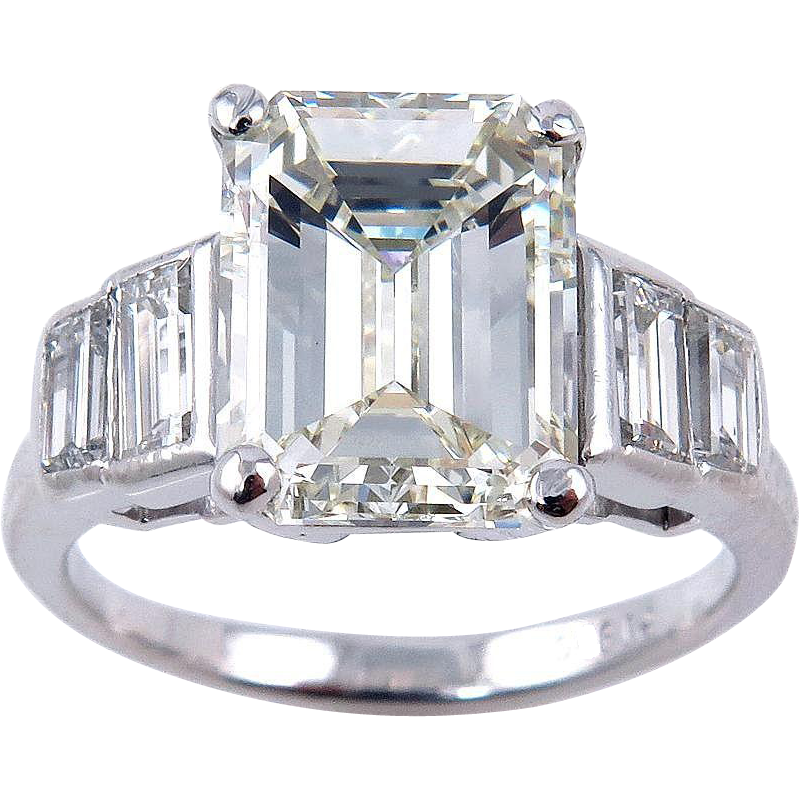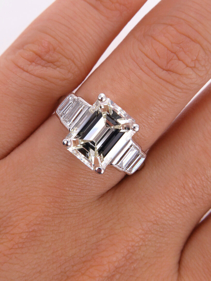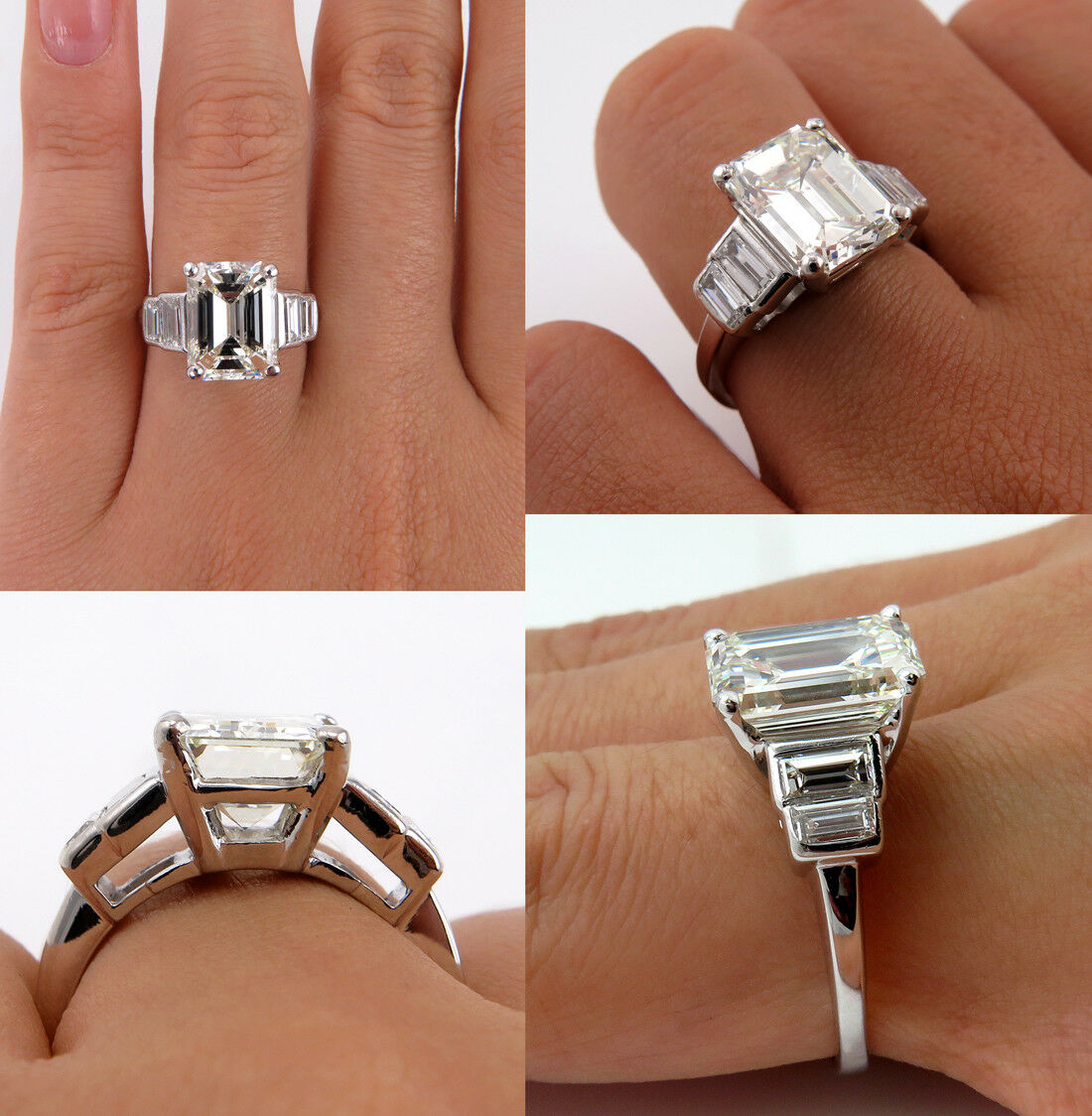 4Ct Emerald Baguette Cut Diamond Solitaire Engagement Ring 18K White Gold Finish