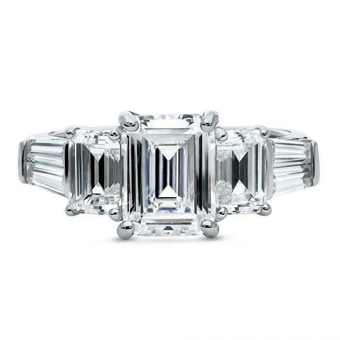 4Ct Emerald Cut Diamond Elegant Three Stone Engagement Ring 14K White Gold Over