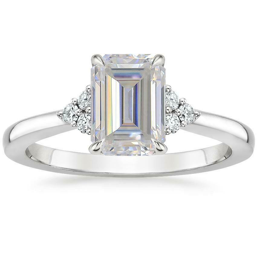 4ct Emerald Cut Diamond Engagement Ring 14k White Gold Finish Trio Round Accents