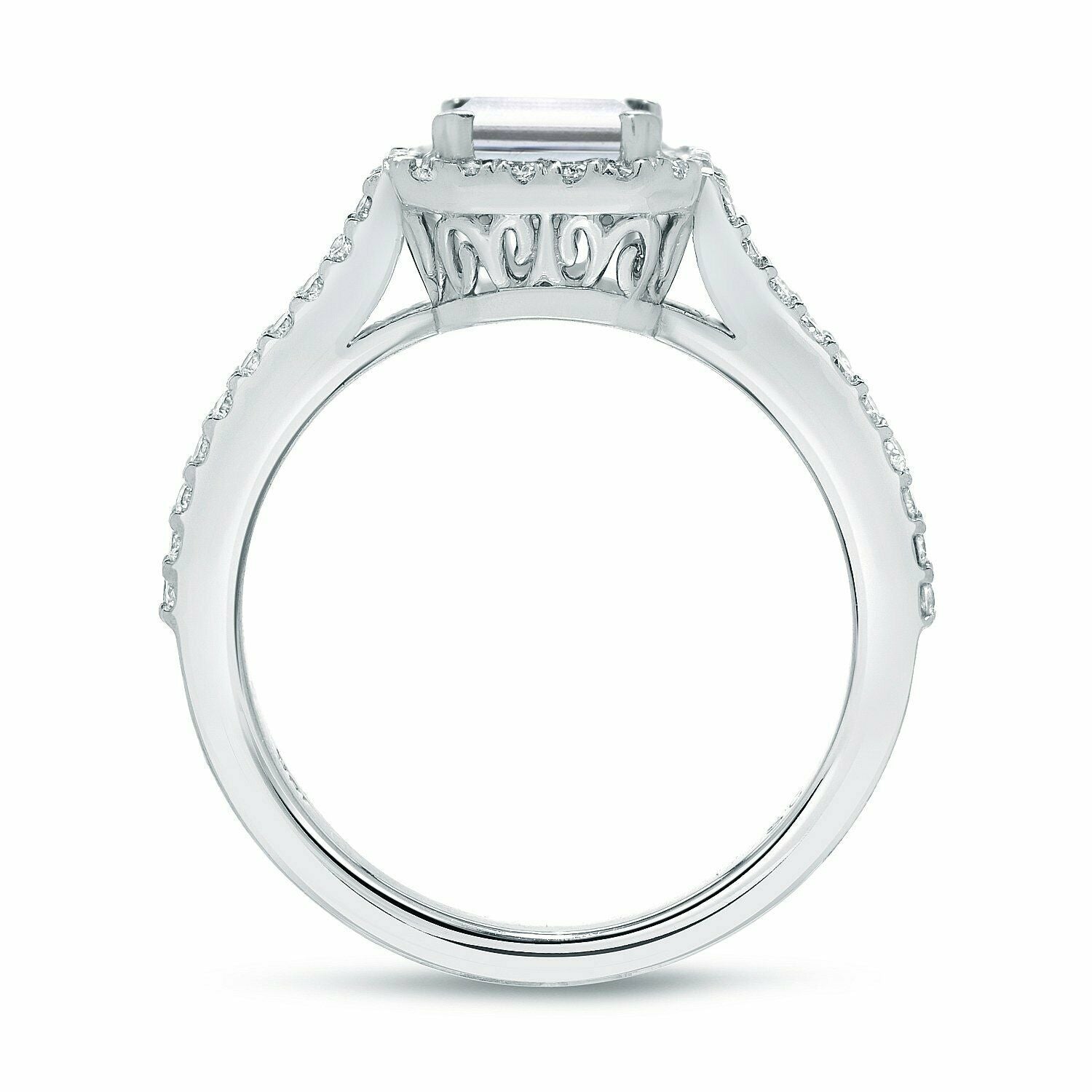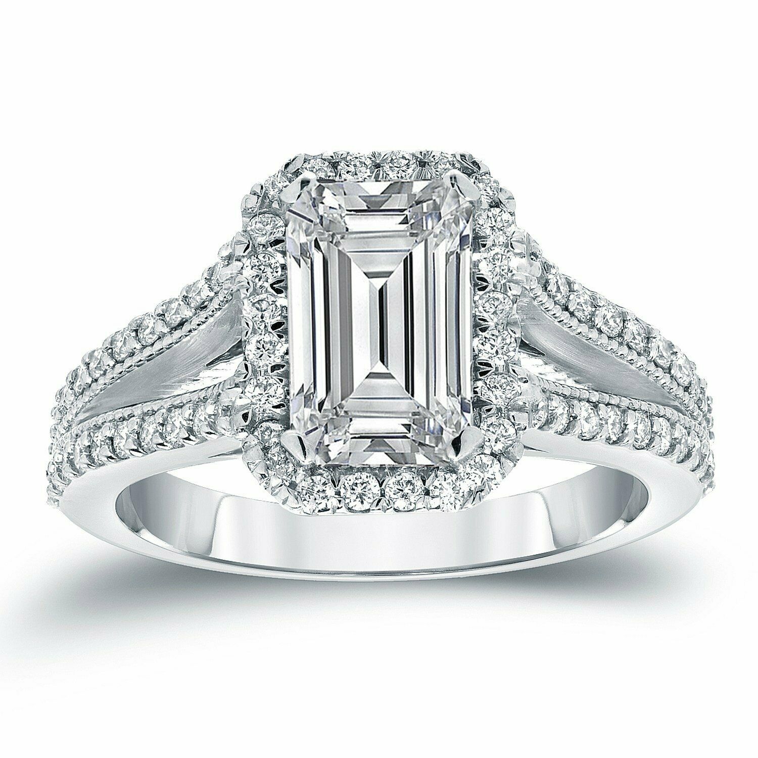 4Ct Emerald Cut Diamond Halo Engagement Ring 14K White Gold Finish Split Shank