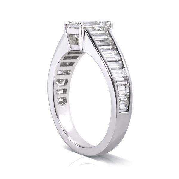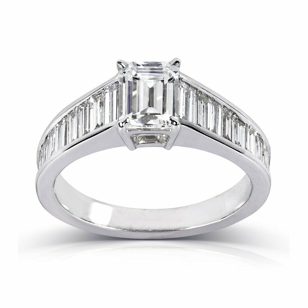 4Ct Emerald Cut Diamond Unique Iced Accent Engagement Ring 14K White Gold Finish