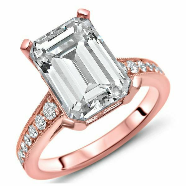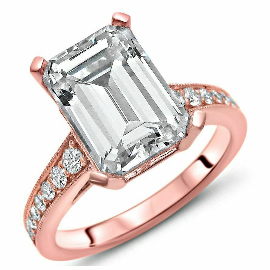 4Ct Emerald Cut Diamond with Round Accents Engagement Ring 14K Rose Gold Finish
