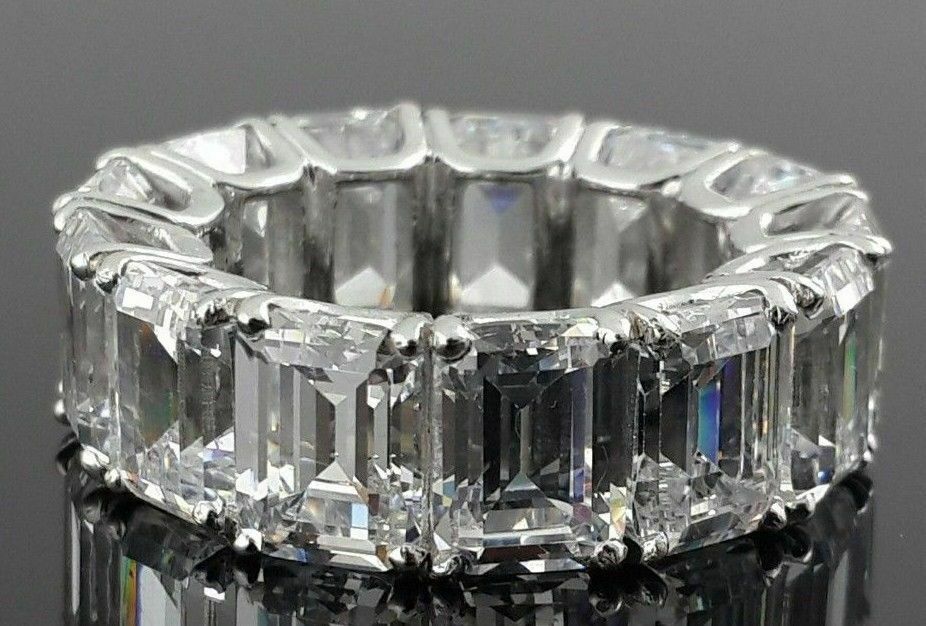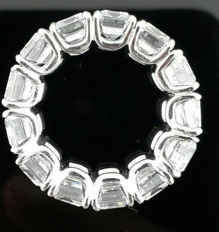 4ct Emerald Cut VVS1D Diamond Eternity Wedding Ring Band 14k White Gold Finish