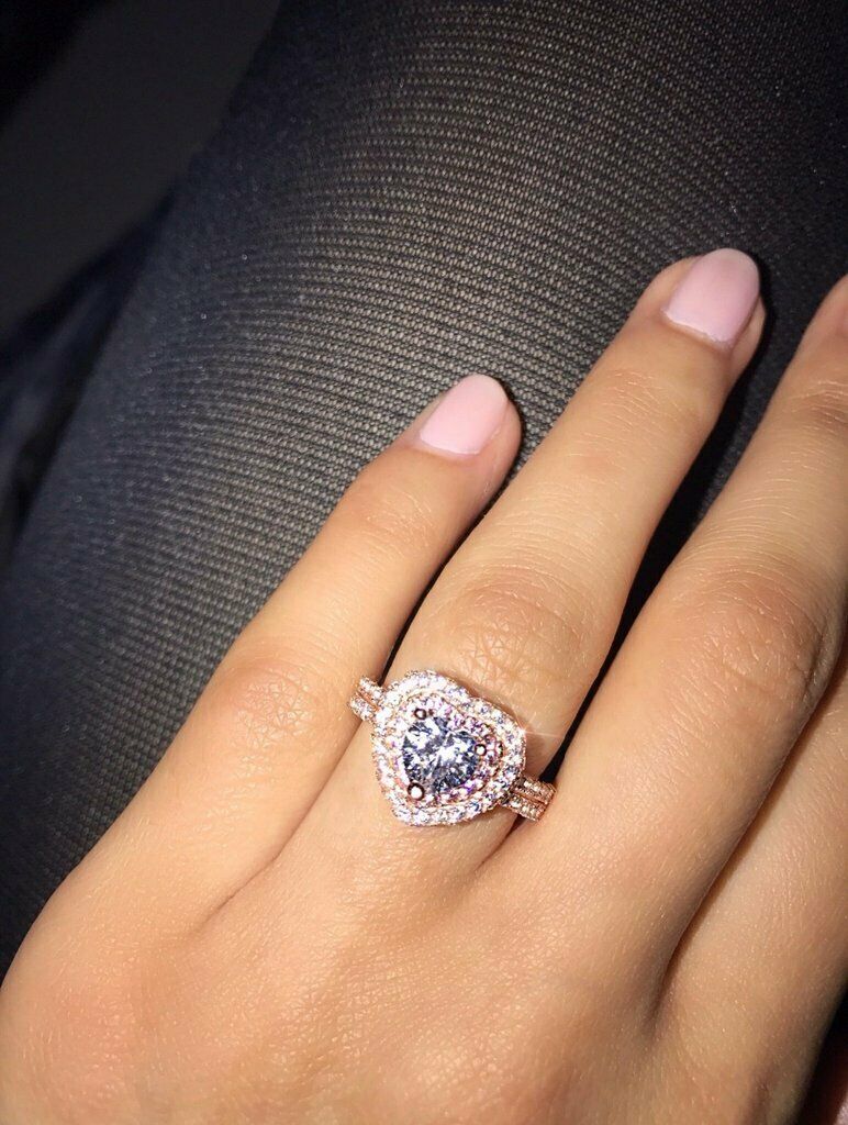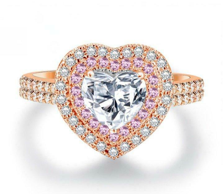 4Ct Heart Cut Diamond Amethyst Dual Halo Engagement Ring 14K Rose Gold Finish