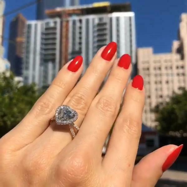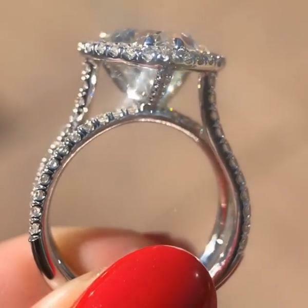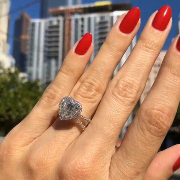 4Ct Heart Cut Diamond Dual Split Band Halo Engagement Ring 14K White Gold Finish
