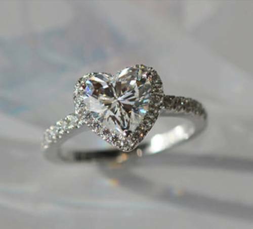 4Ct Heart Cut Diamond Halo Engagement Ring Round Accents 14K White Gold Finish