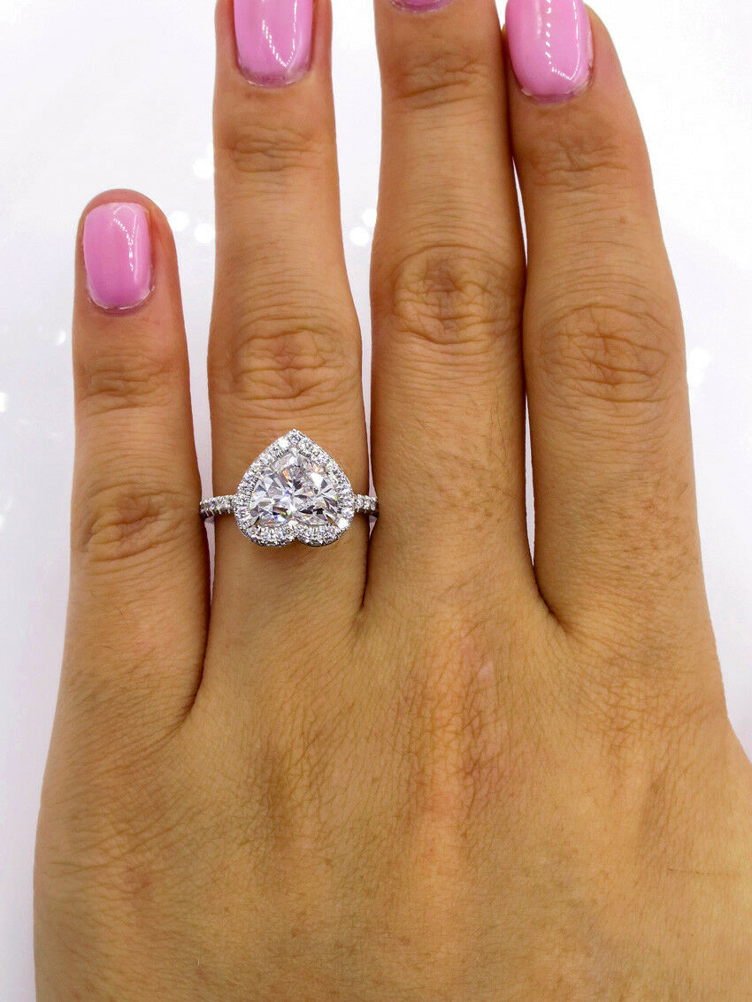 4Ct Heart Cut Diamond Hidden Halo Solitaire Engagement Ring 14K White Gold Over