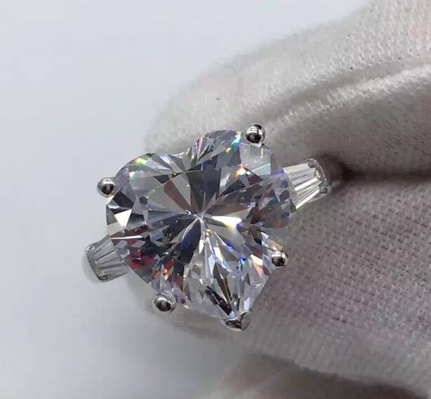 4Ct Heart Cut Diamond Three Stone Ring 14K White Gold Finish Baguette Accents