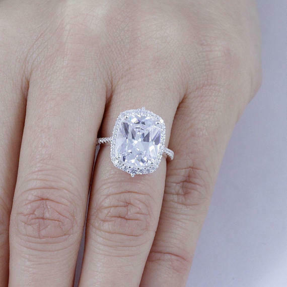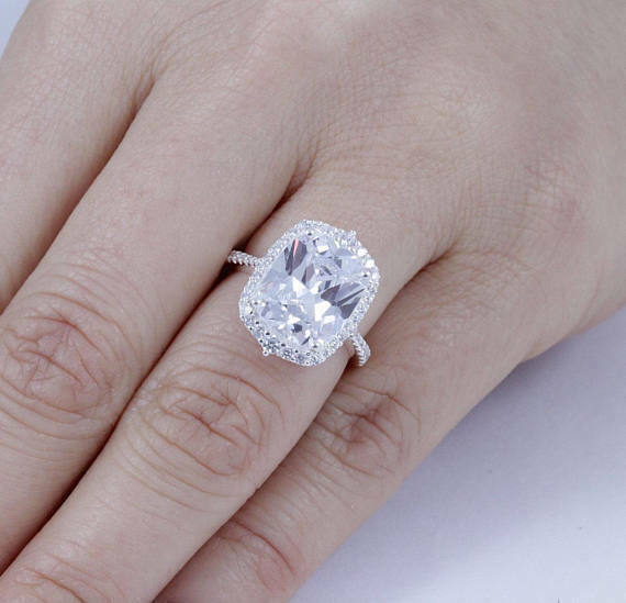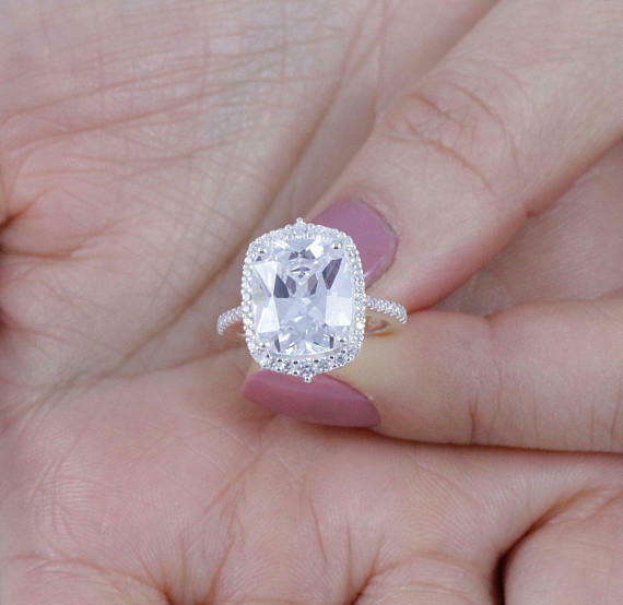 4Ct Long Cushion Cut Diamond Vintage Halo Engagement Ring 14K White Gold Finish
