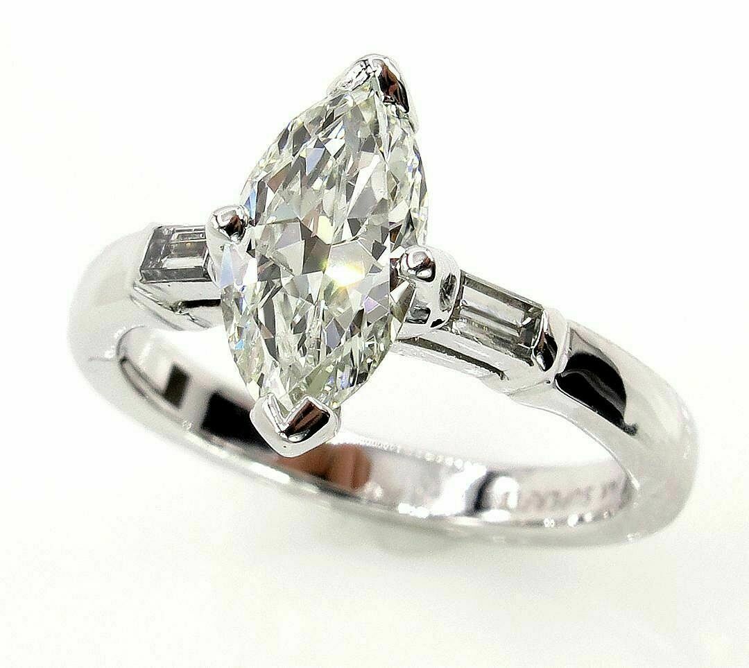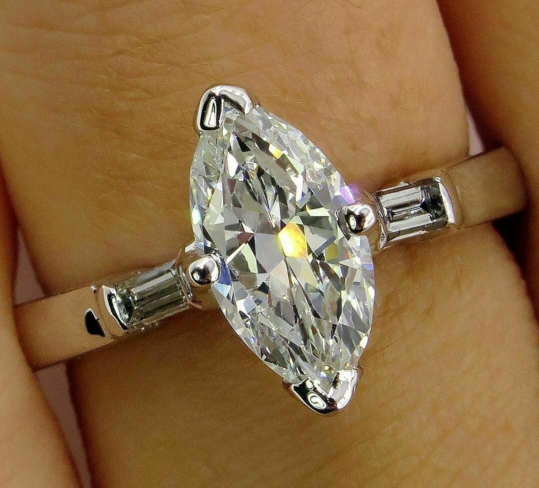 4ct Marquise Baguette Accent Diamond Trilogy Engagement Ring 14K White Gold Over