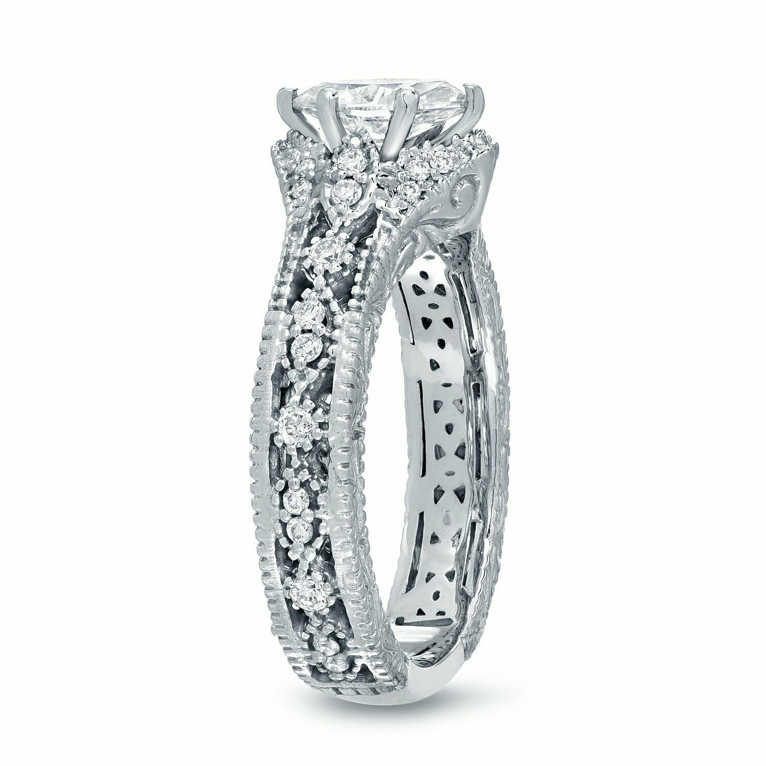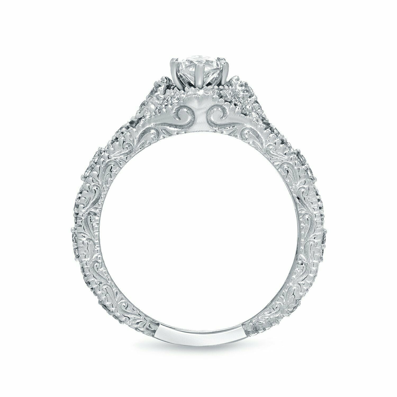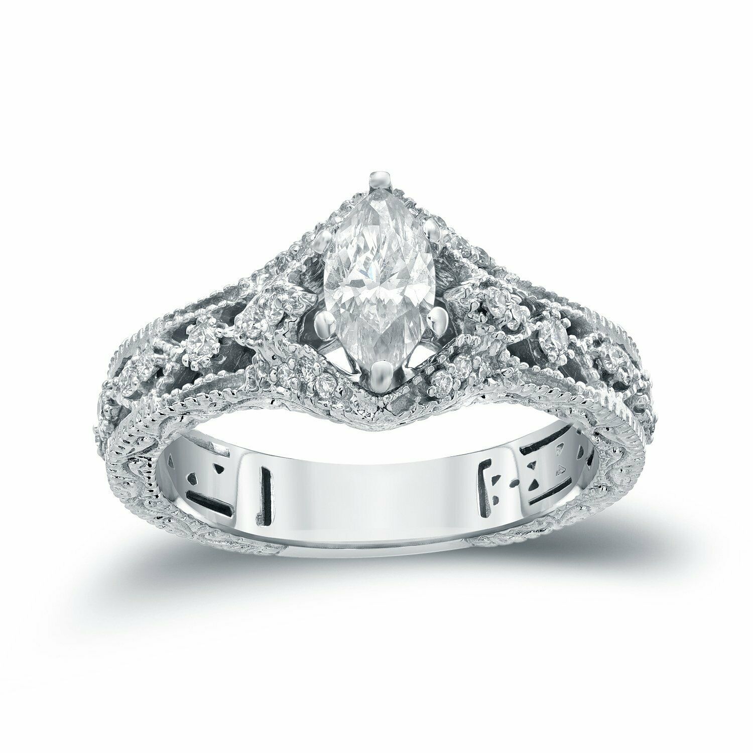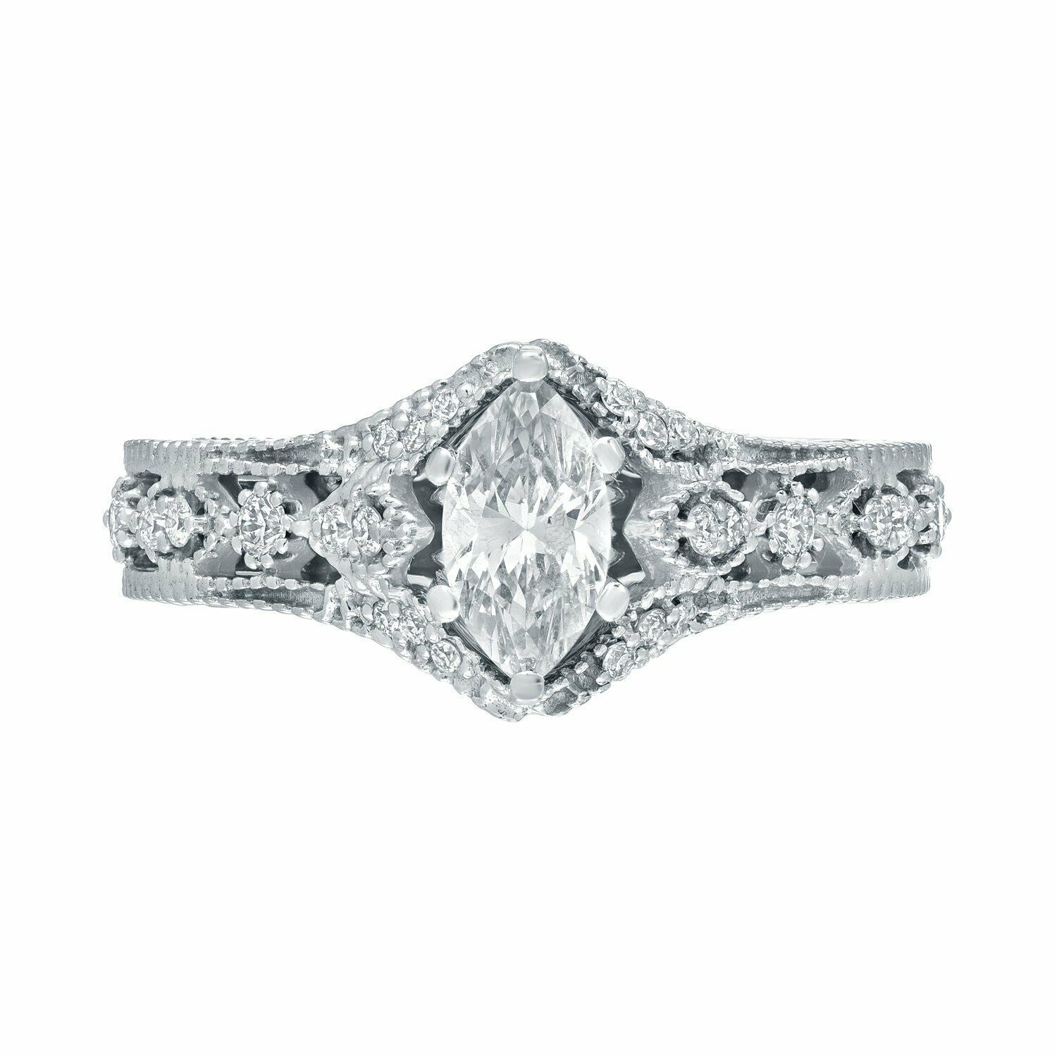 4Ct Marquise Cut Diamond Milgrain Vintage Engagement Ring 14K White Gold Finish