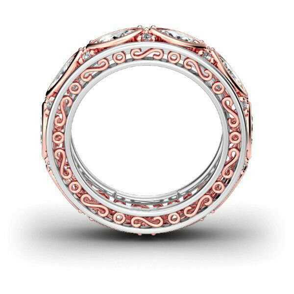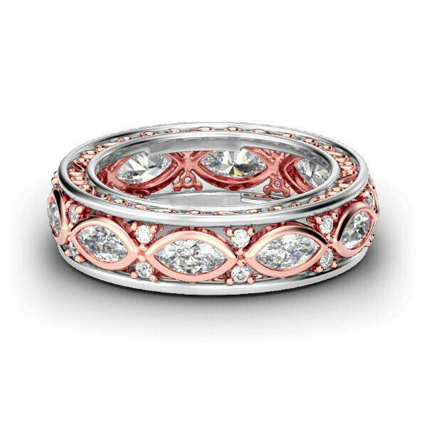 4Ct Marquise Cut VVS1 Diamond Vintage Filigree Wedding Band 14K Dual Gold Finish