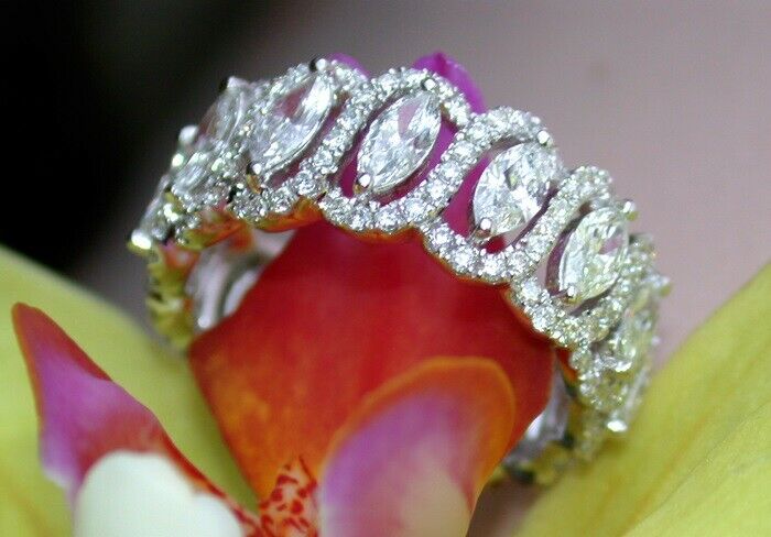 4Ct Marquise Diamond Stylish Filigree Vintage Wedding Band 14K White Gold Finish
