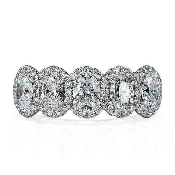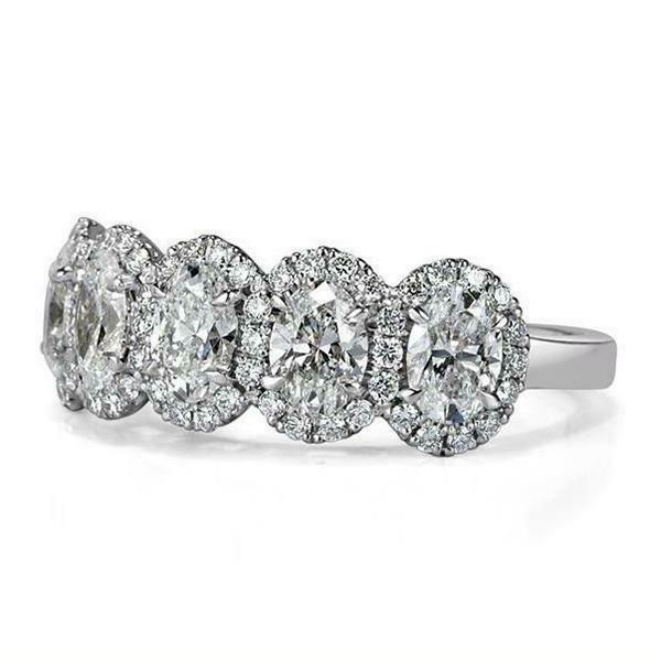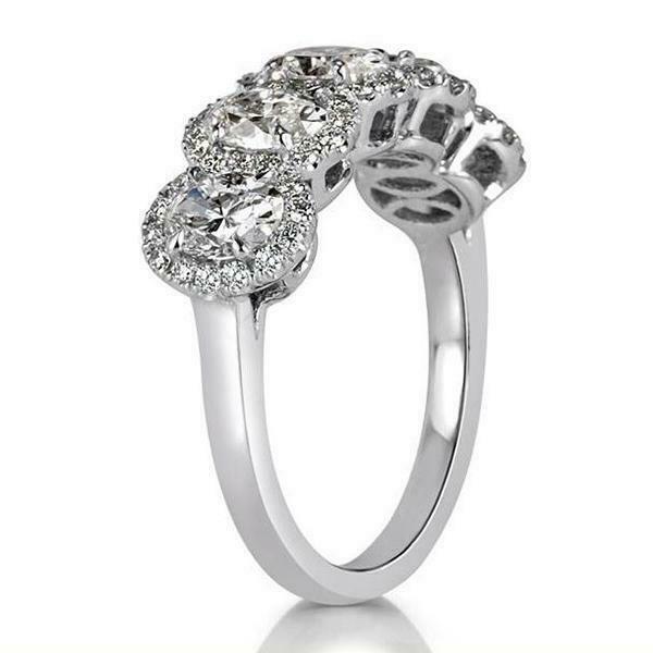 4Ct Oval Cut Diamond Five Stone Halo Women Engagement Ring 14K White Gold Finish