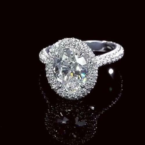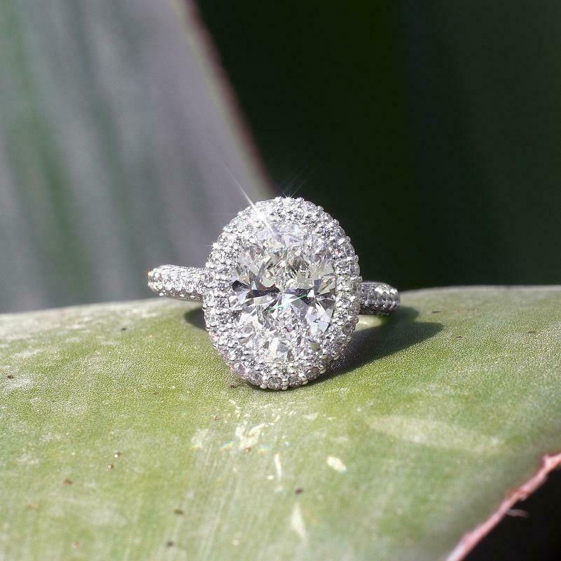 4Ct Oval Cut Diamond Floral Filigree Halo Engagement Ring 14K White Gold Finish