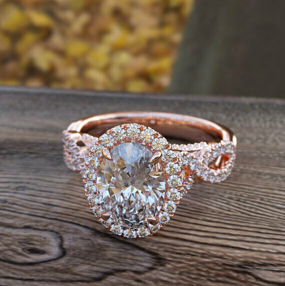 4Ct Oval Cut Diamond Halo Infinity Gatsby Engagement Ring 14K Rose Gold Finish