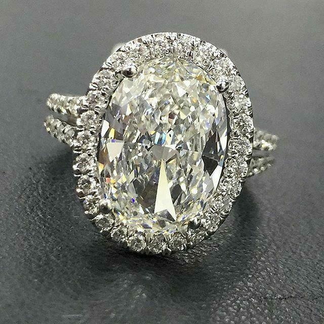4ct Oval Cut Diamond Halo Split Shank Engagement Ring 14K White Gold Finish