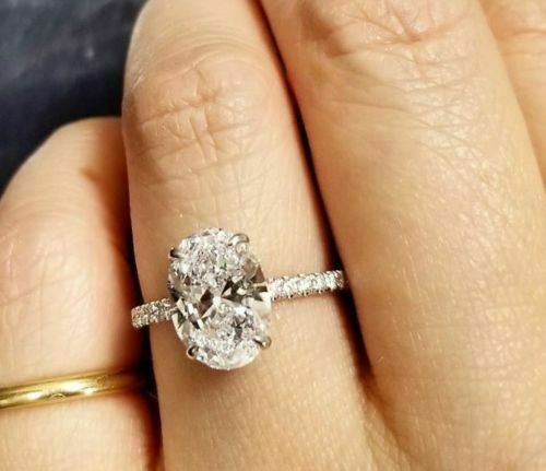 4Ct Oval Cut Diamond Hidden Halo Solitaire Engagement Ring 14K White Gold Finish