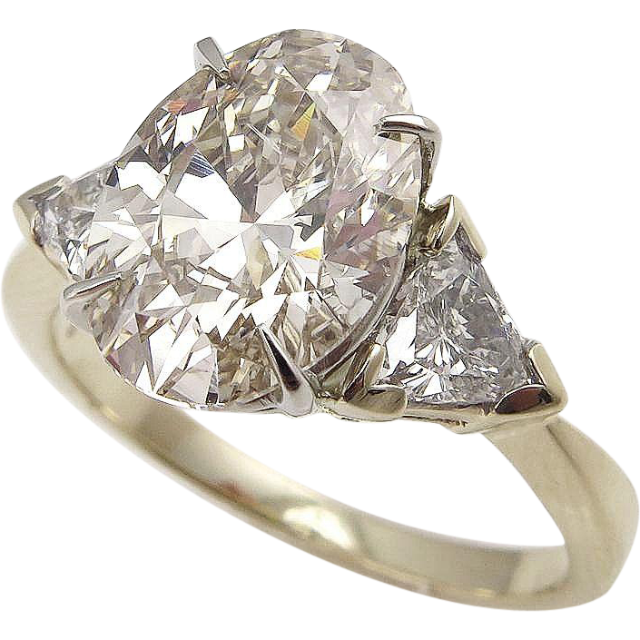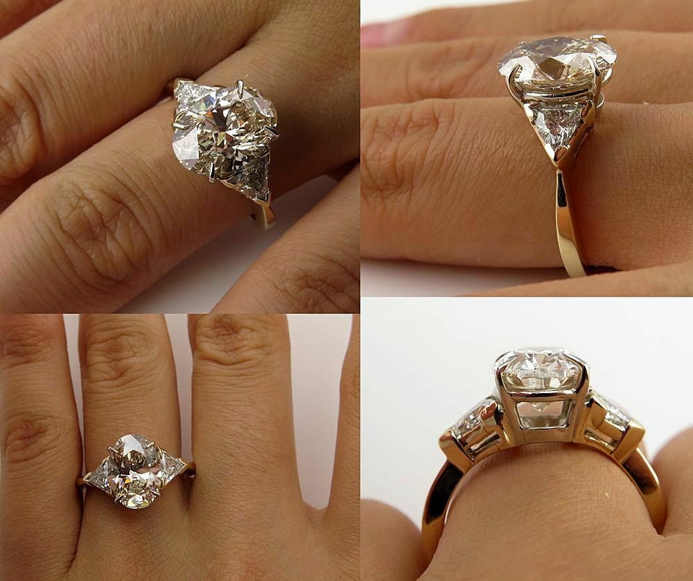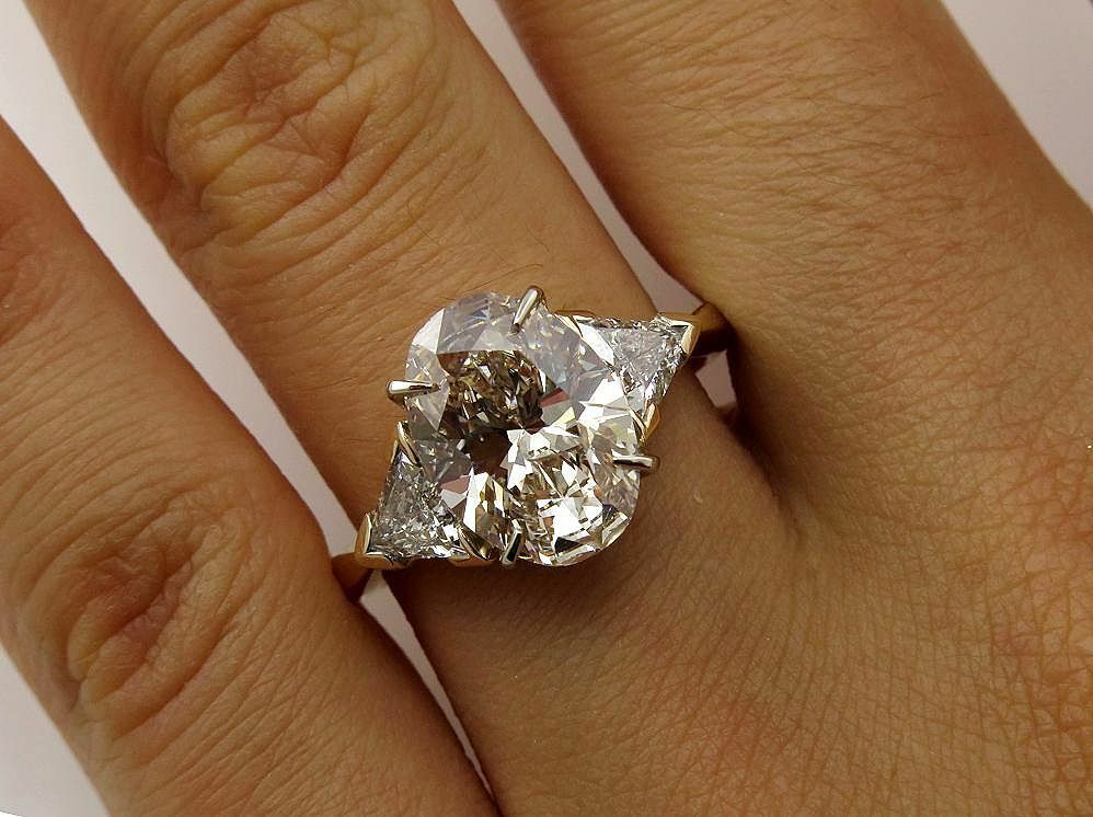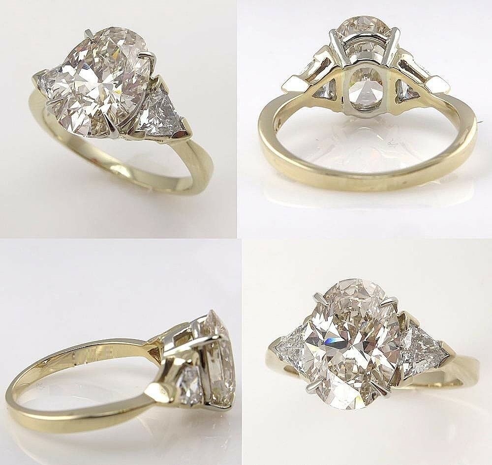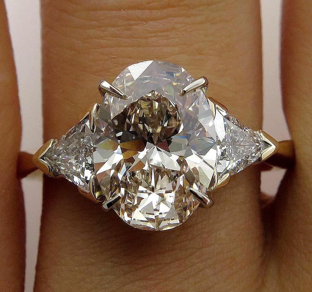 4Ct Oval Cut Diamond Trilogy Solitaire Ring 14K Yellow Gold Over Trillion Accent