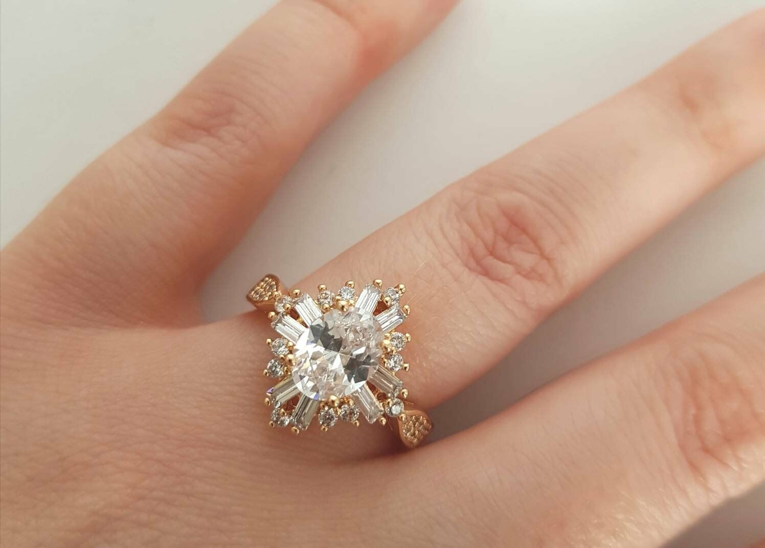 4Ct Oval Cut Diamond Vintage Crown Art Deco Engagement Ring 14K Rose Gold Finish