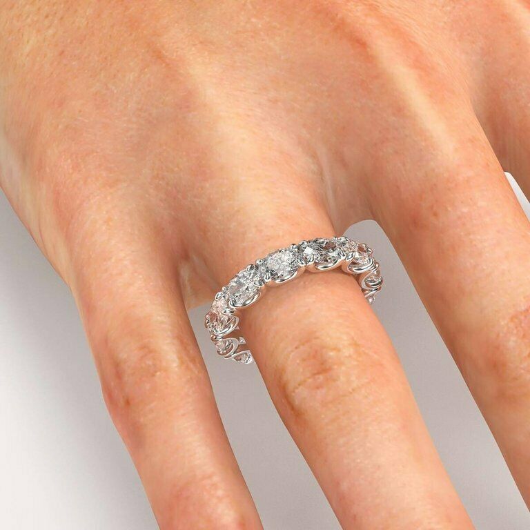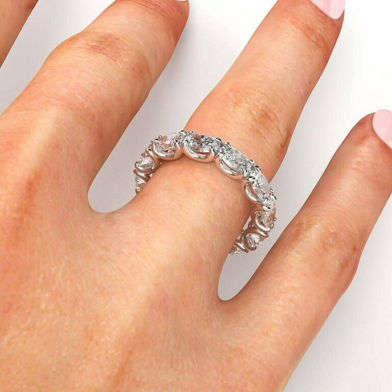 4ct Oval Cut Diamond Wedding Ring Band Full Eternity Set 14k White Gold Finish