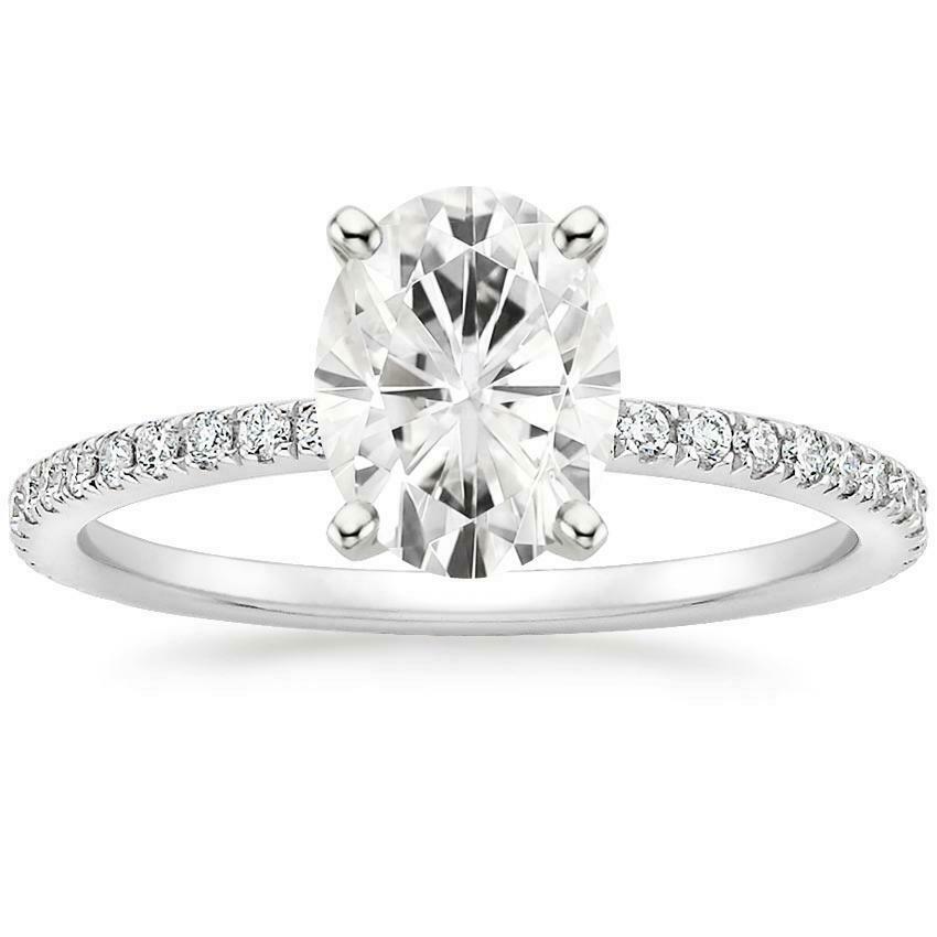 4ct Oval Cut VVS1/D Diamond Engagement Ring 14k White Gold Finish Round Accents