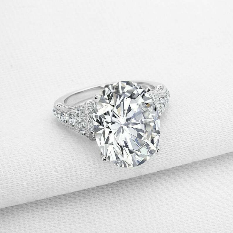 4ct Oval Cut Diamond Solitaire Engagement Ring 14k White Gold Over with Round Accent