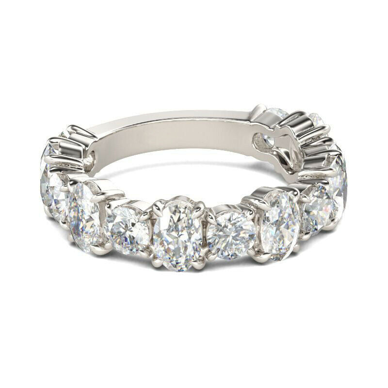 4Ct Oval Round Cut Diamond Half Eternity Wedding Band Ring 14K White Gold Finish