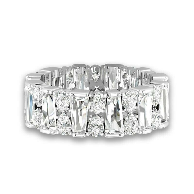 4ct Pear & Baguette Cut Diamond Wedding Ring Band 14k White Gold Finish Eternity