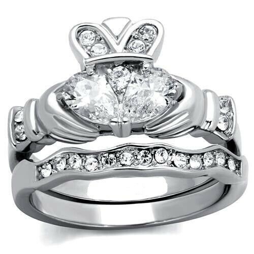 4Ct Pear Cut Diamond Claddagh Bridal Set Engagement Ring 14K White Gold Finish