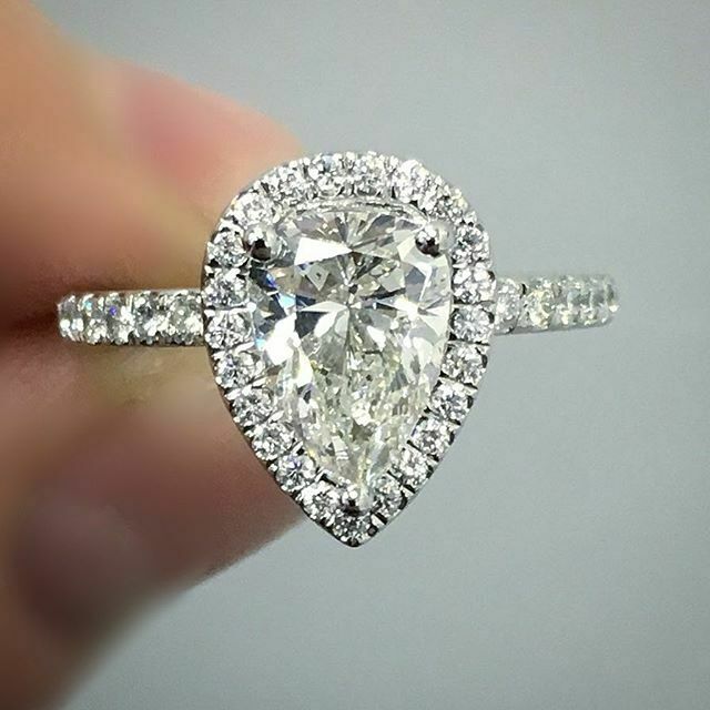 4Ct Pear Cut Diamond Halo Engagement Ring 18K White Gold Finish Round Accents