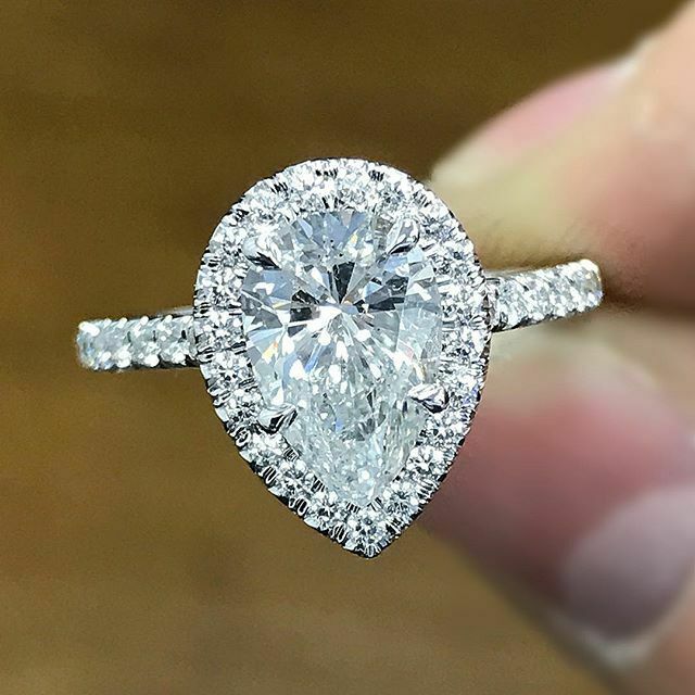 4Ct Pear Cut Diamond Halo Solitaire Ring 18K White Gold Finish with Round Accent