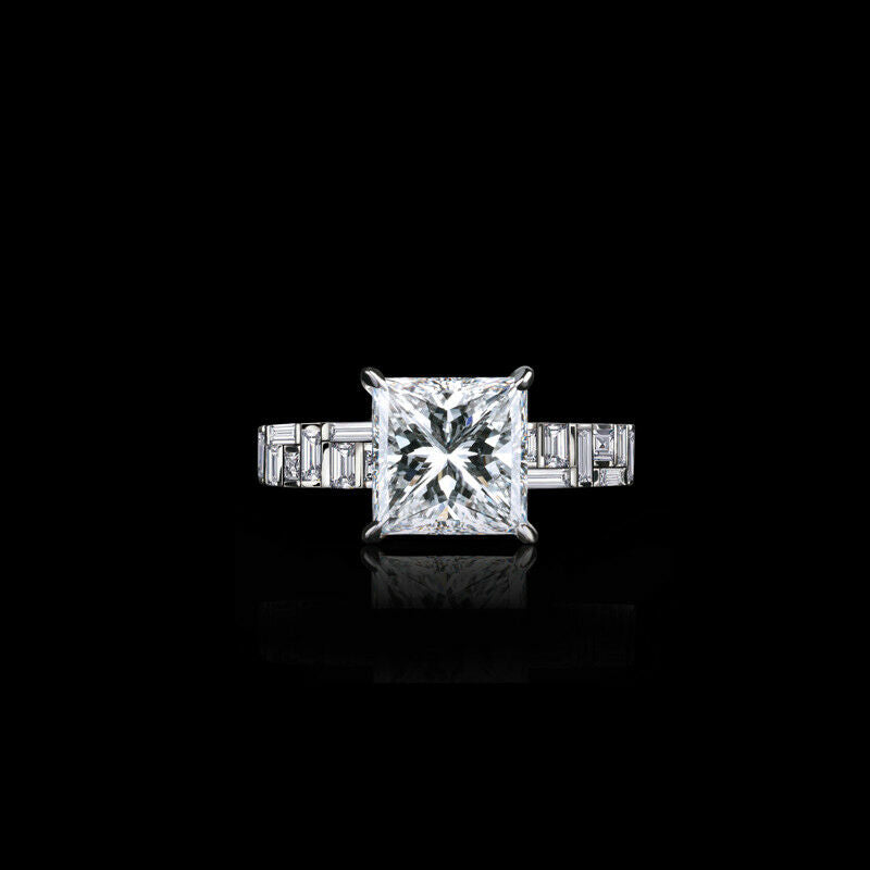 4ct Princess Cut Diamond Baguette Accent Engagement Ring 14k White Gold Finish