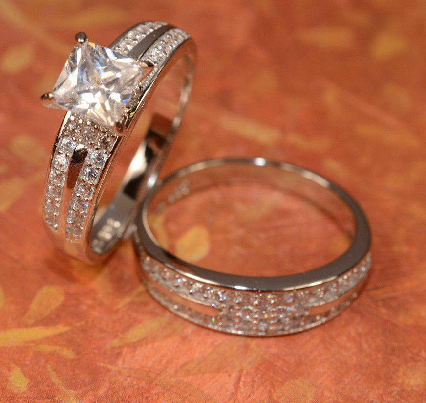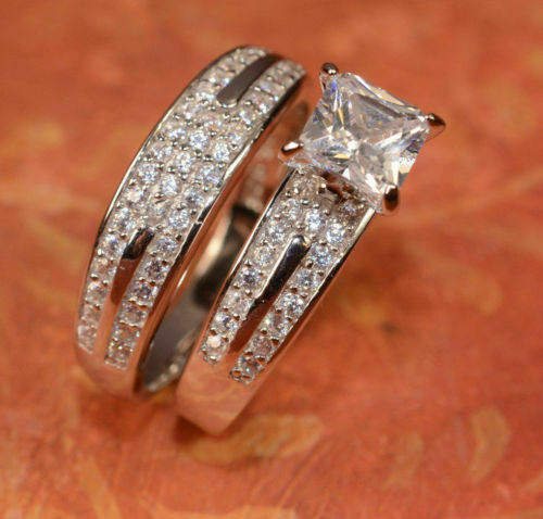4Ct Princess Cut Diamond Bridal Set Band Engagement Ring 14K White Gold Finish