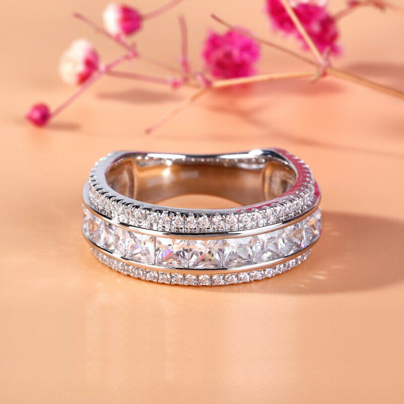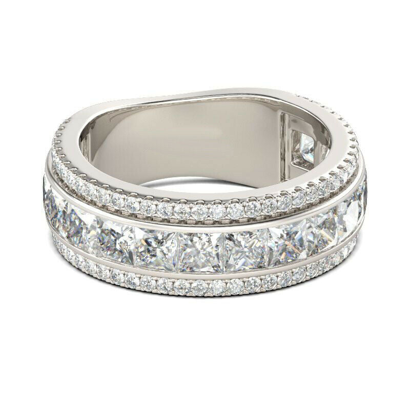 4Ct Princess Cut Diamond Channel Set Iced Wedding Band Ring 14K White Gold Over
