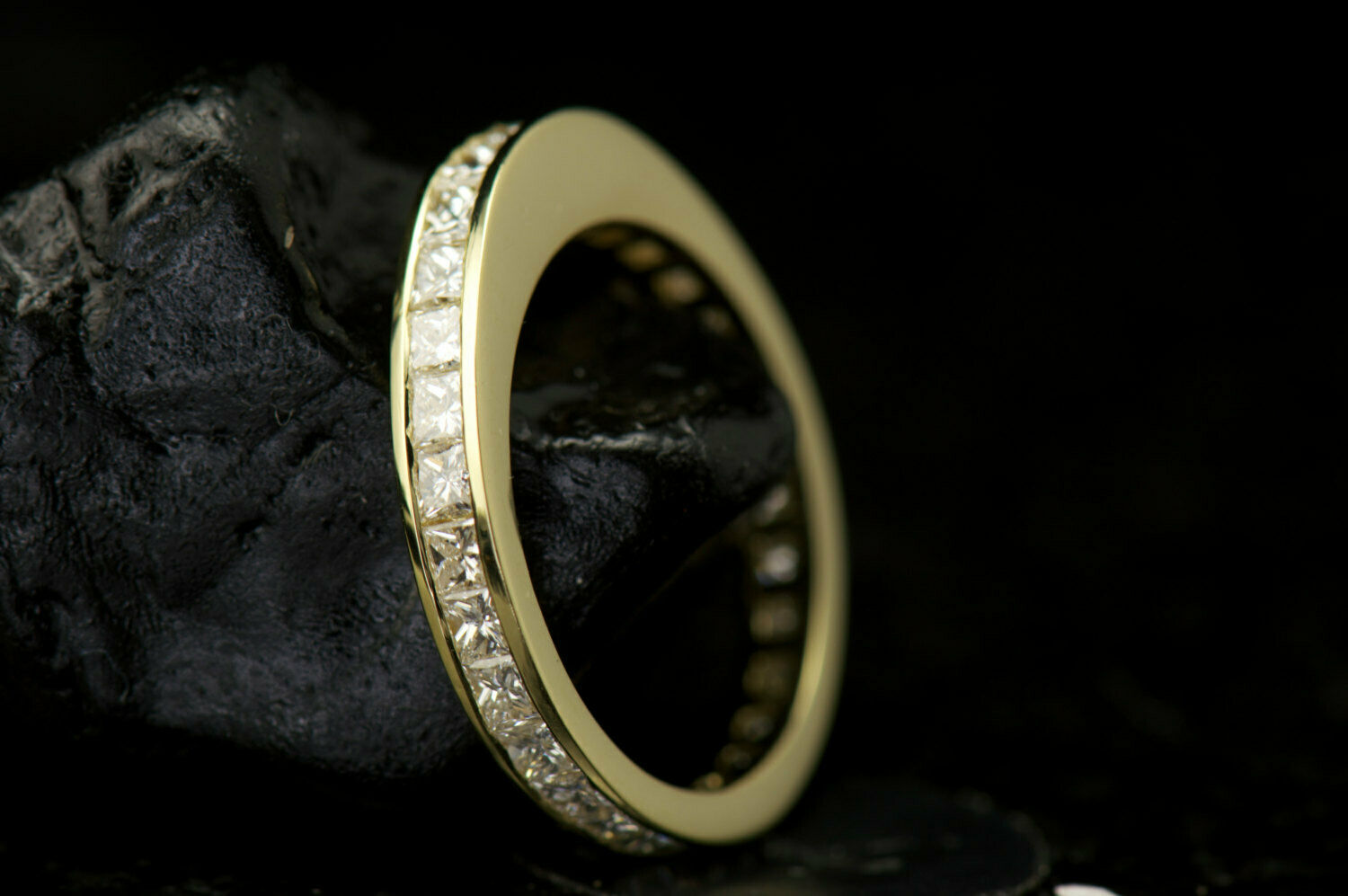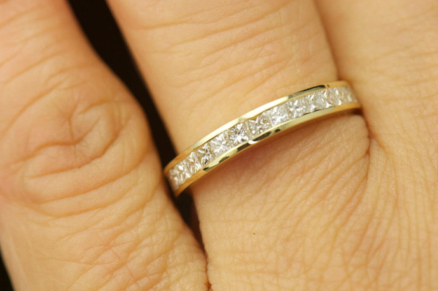 4Ct Princess Cut Diamond Channel Set Unique Wedding Band 14K Yellow Gold Finish