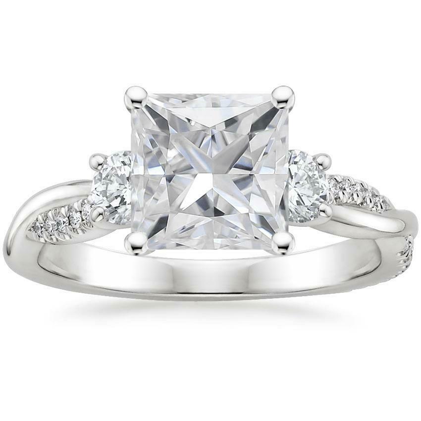 4ct Princess Cut Diamond Engagement Ring 14k White Gold Over Trilogy Twist Shank